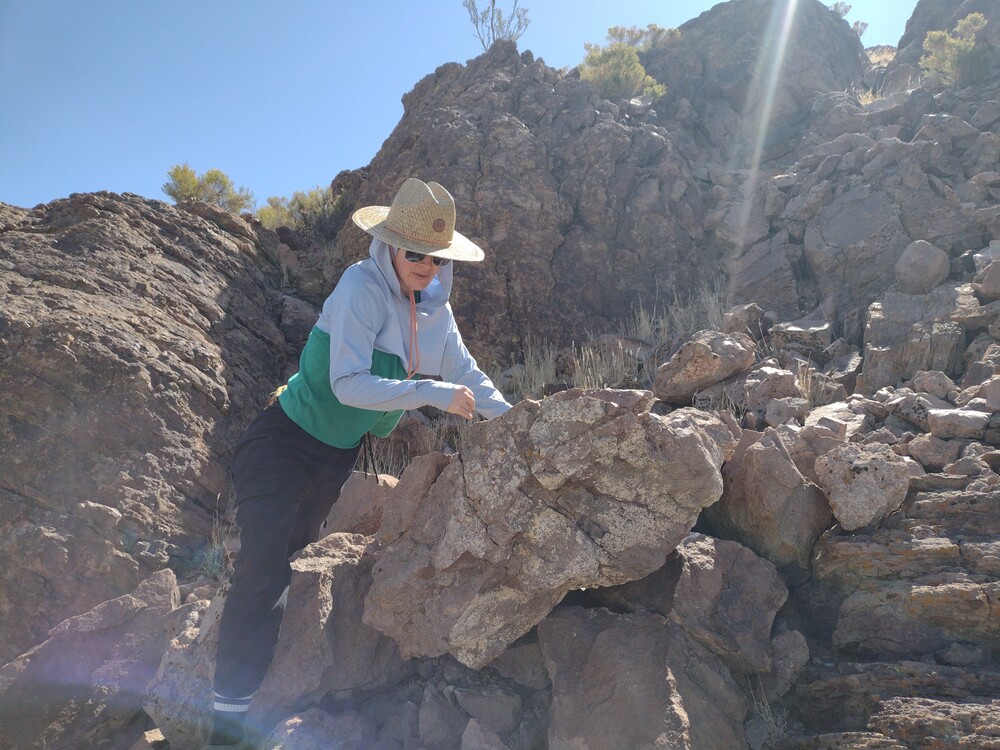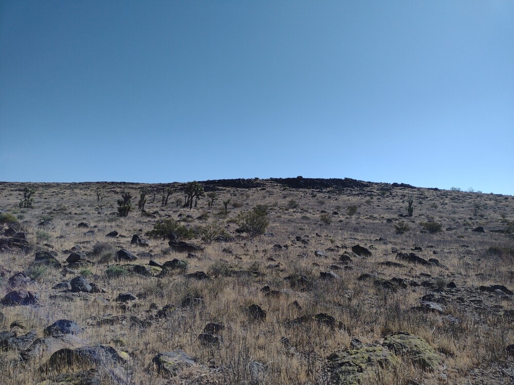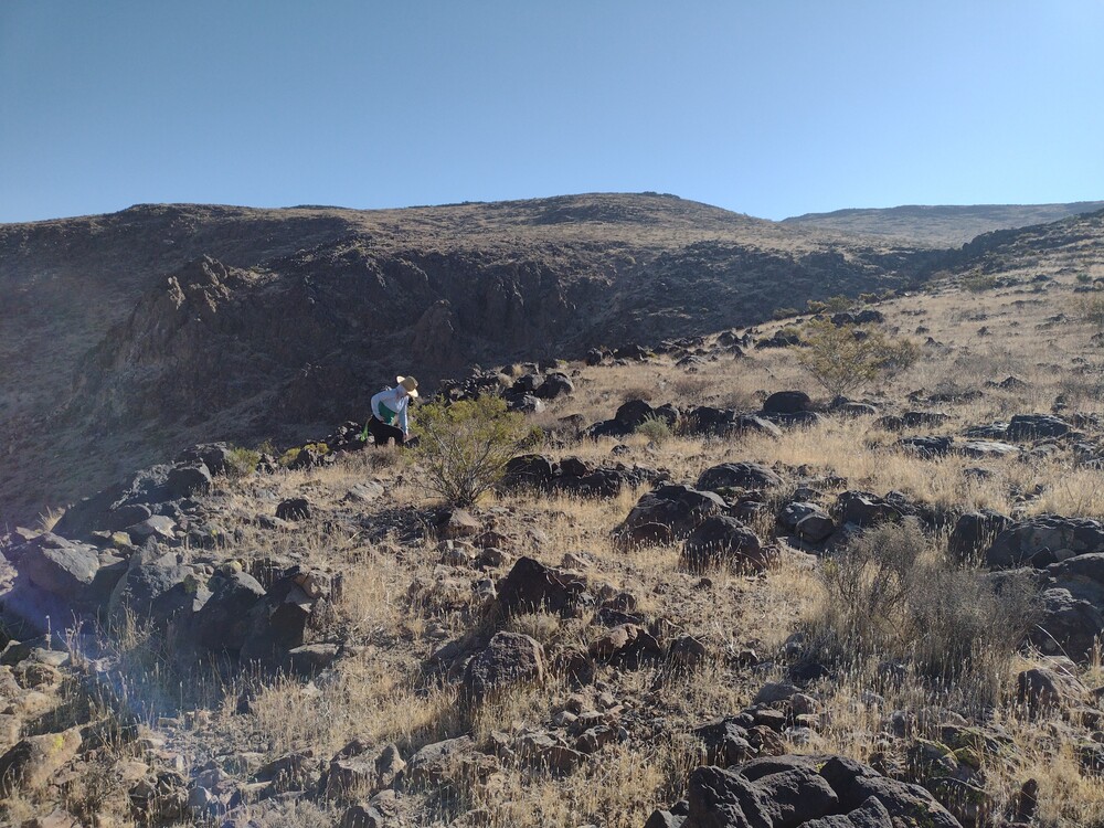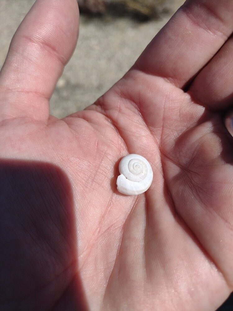 We started north of the watershed, but if you do this, you need to be on the south side. Kel found a snail shell here (see photo below). I assumed this was an ancient fossil from the various dry lakes in the area, but it turns out there are a few species that live out there, specifically in drainage basins/ watersheds on the sides of mountains – just like the area we hiked through. I’m assuming the example she found is a Victorville shoulderband, not the endangered Mojave shoulderband. Pretty neat!