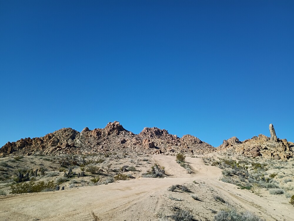 This was my first activation for SoCal Winter Field Day. I woke up early and wasted no time leaving Los Angeles to get to this first summit, but I did stop somewhere off Bear Valley Road for fuel and a breakfast burrito. Getting to the starting point was pretty easy. From Barstow Rd, turn east on Haynes Rd, then make a left on Huff Rd. That will run straight into Power Line Rd. Turn right and take it as close to the summit as you can. It gets kinda rocky the further you go. 4633 is in an area where people 4×4, so the earth is pretty torn up. Park where you can. There is also a popular rock climbing area known as “Hercules Finger”.