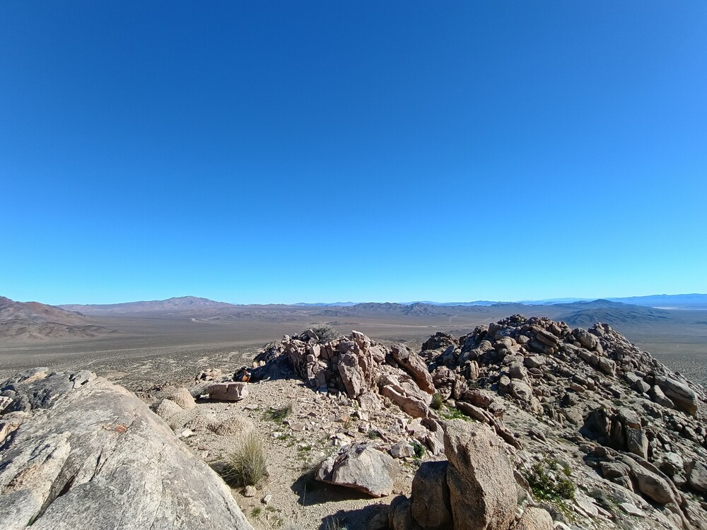I followed a moto trail into the rocks for a bit before turning west up to the summit. This was a scramble, hopping over boulders and navigating around large rock formations. Once at the top, I setup 2M CW and heard Mark calling CQ from a summit; 599 both ways. I worked HF high bands and tore down after exhausting chasers. From the top, I could see East Ord. It was the closest summit to me, so I figured I would hike it next. Hiking down, I met two folks climbing Hercules Finger. They asked me if they could borrow a lighter to smoke a doobie. haha. I had a lighter in my truck I gave them to keep so they could continue to enjoy their day.